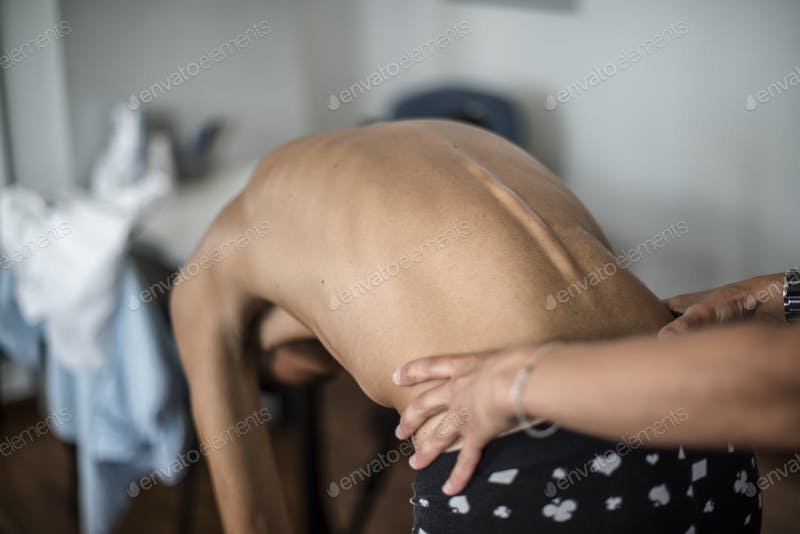 Skolyozun saptanmasında en kolay yollardan biri öne eğilme muayenesidir.Dizlerini bükmeden her iki eli ile yere değmeye çalışan öne eğilmiş çocuktakaburga çıkıntısı, kalça veya belde asimetri olması skolyozu aklagetirmelidir.